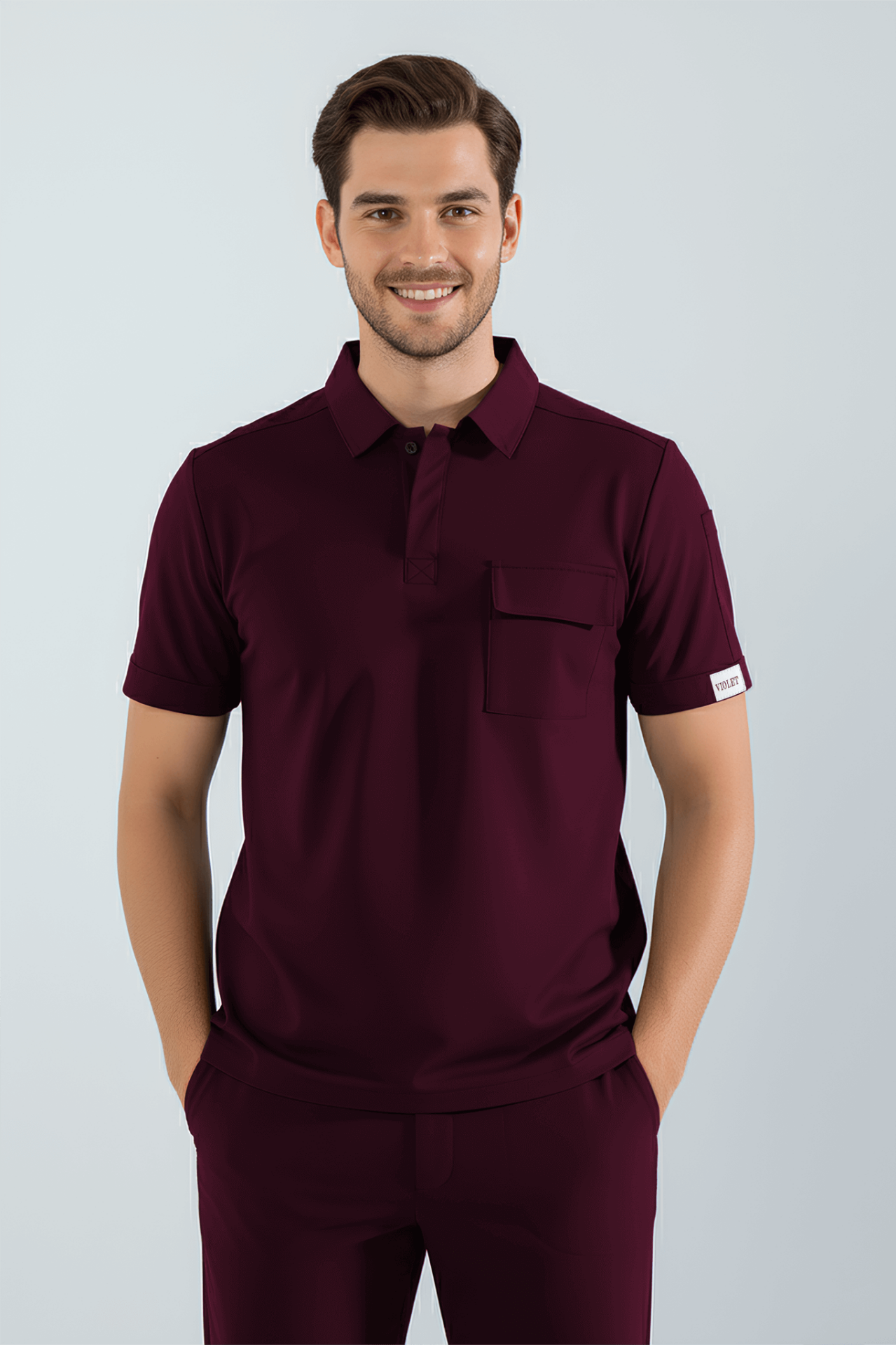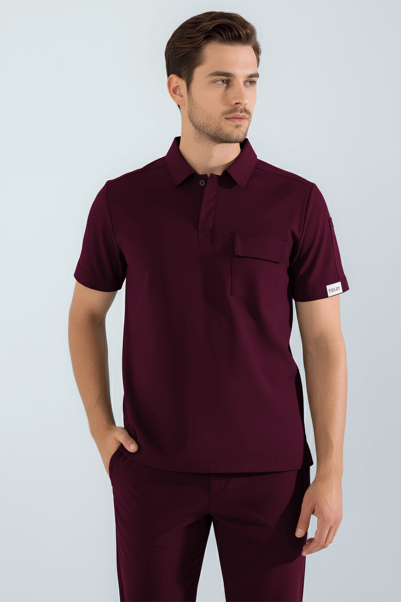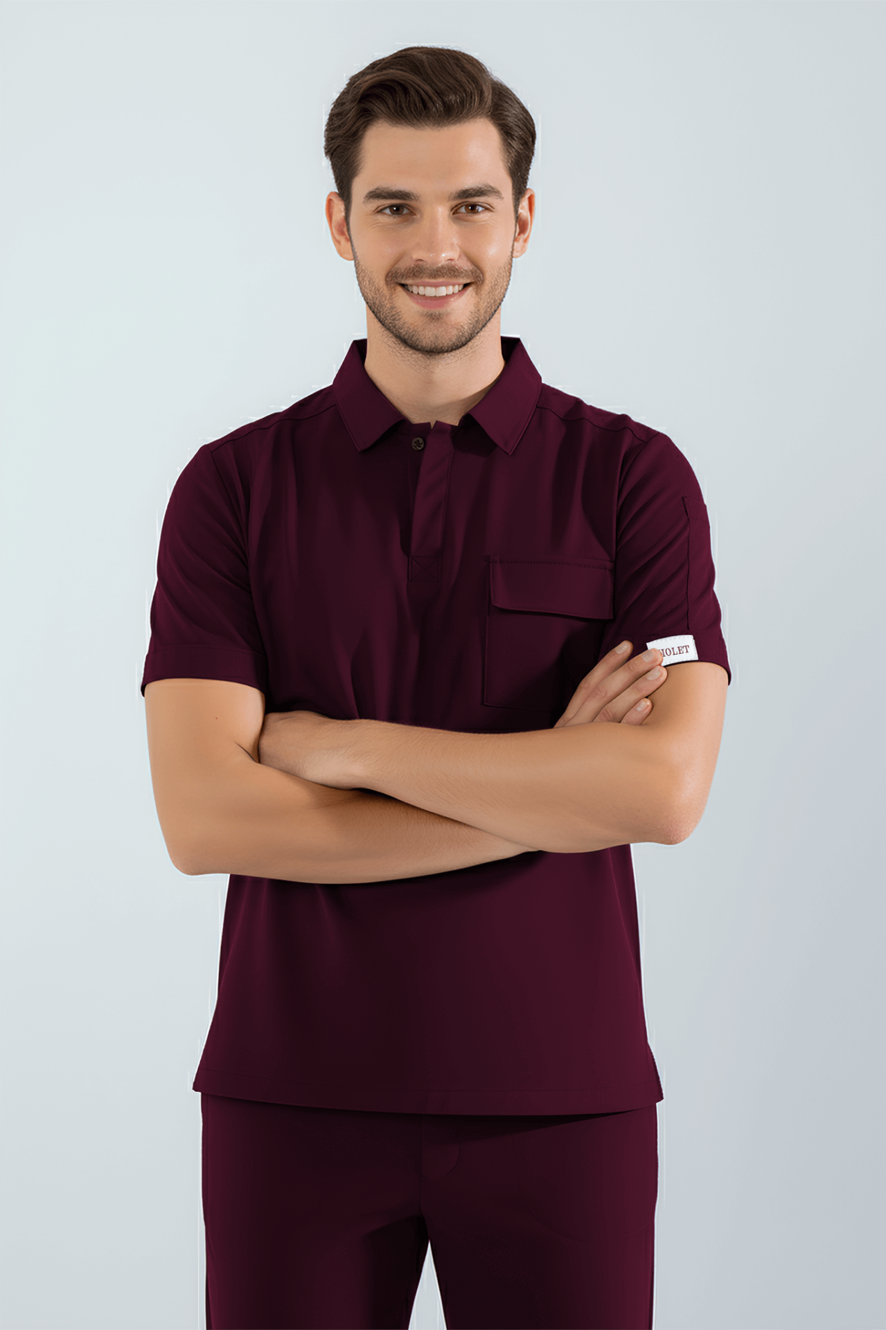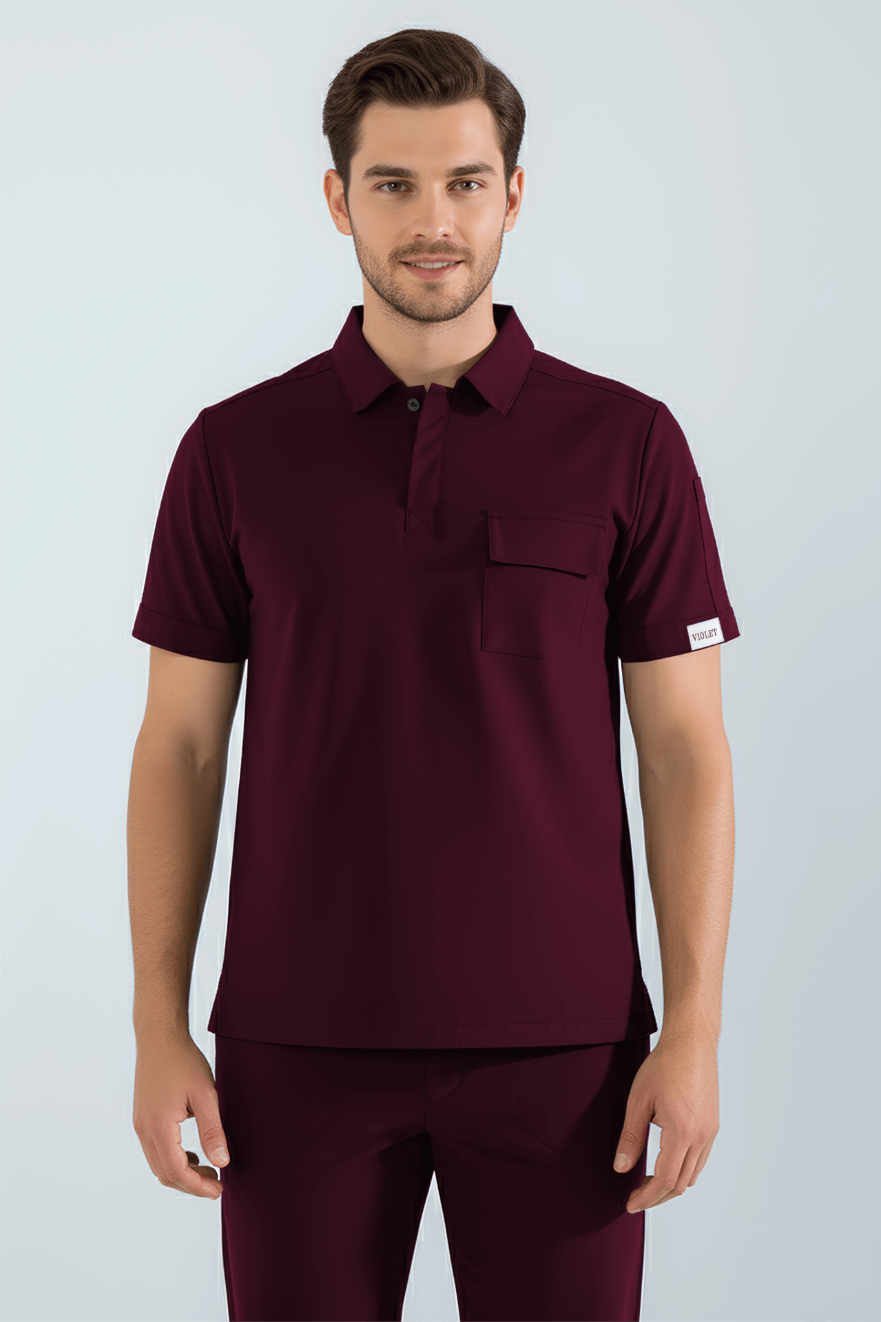Violet Uniform Erkek Bordo Anka Scrubs Üst