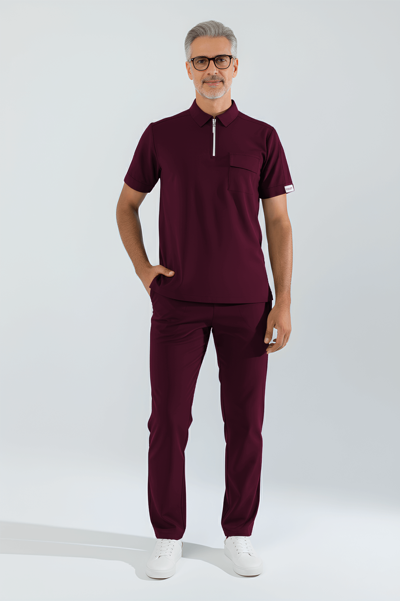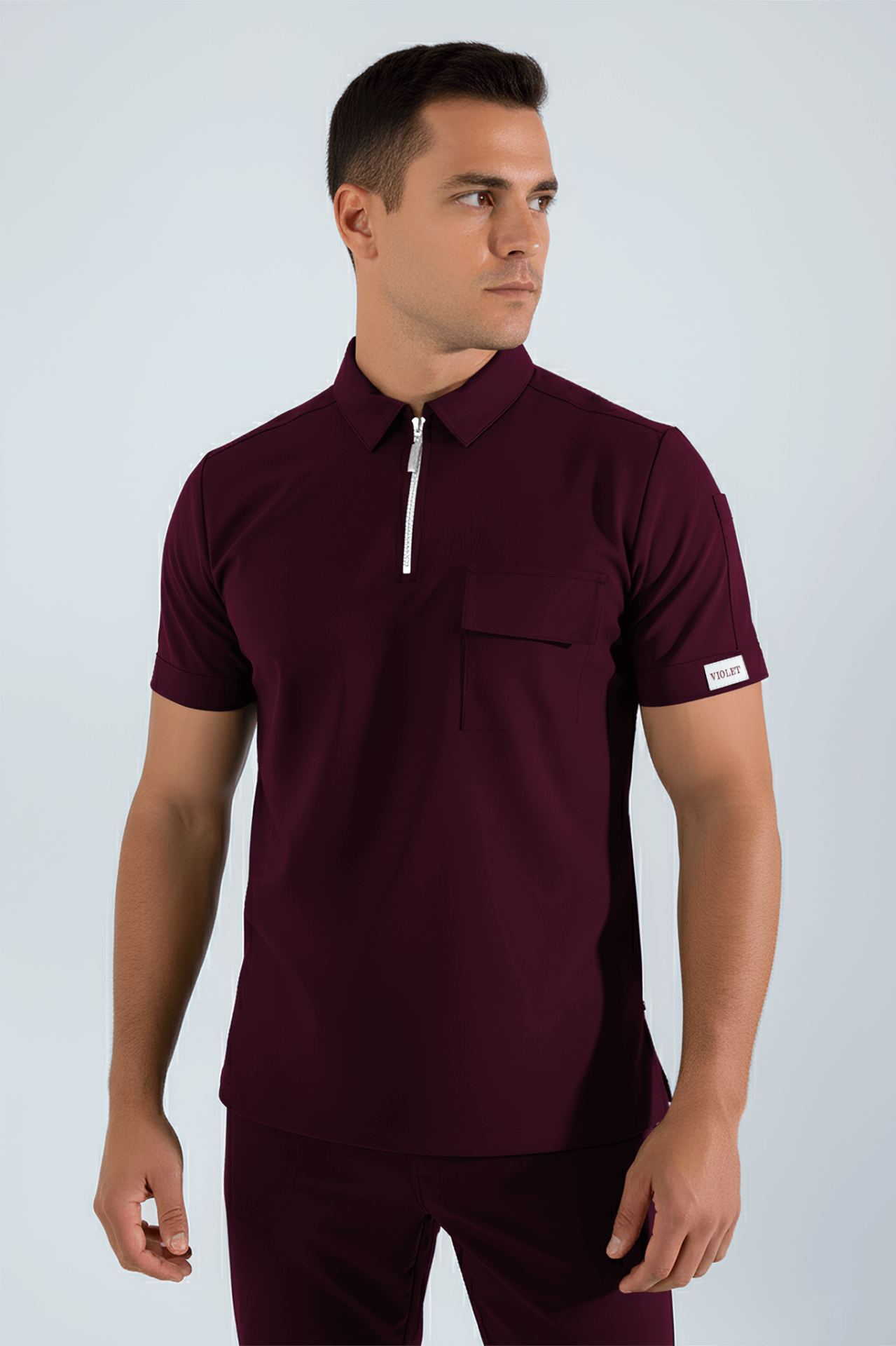 Violet Uniform Erkek Bordo Atlas Scrubs Üst