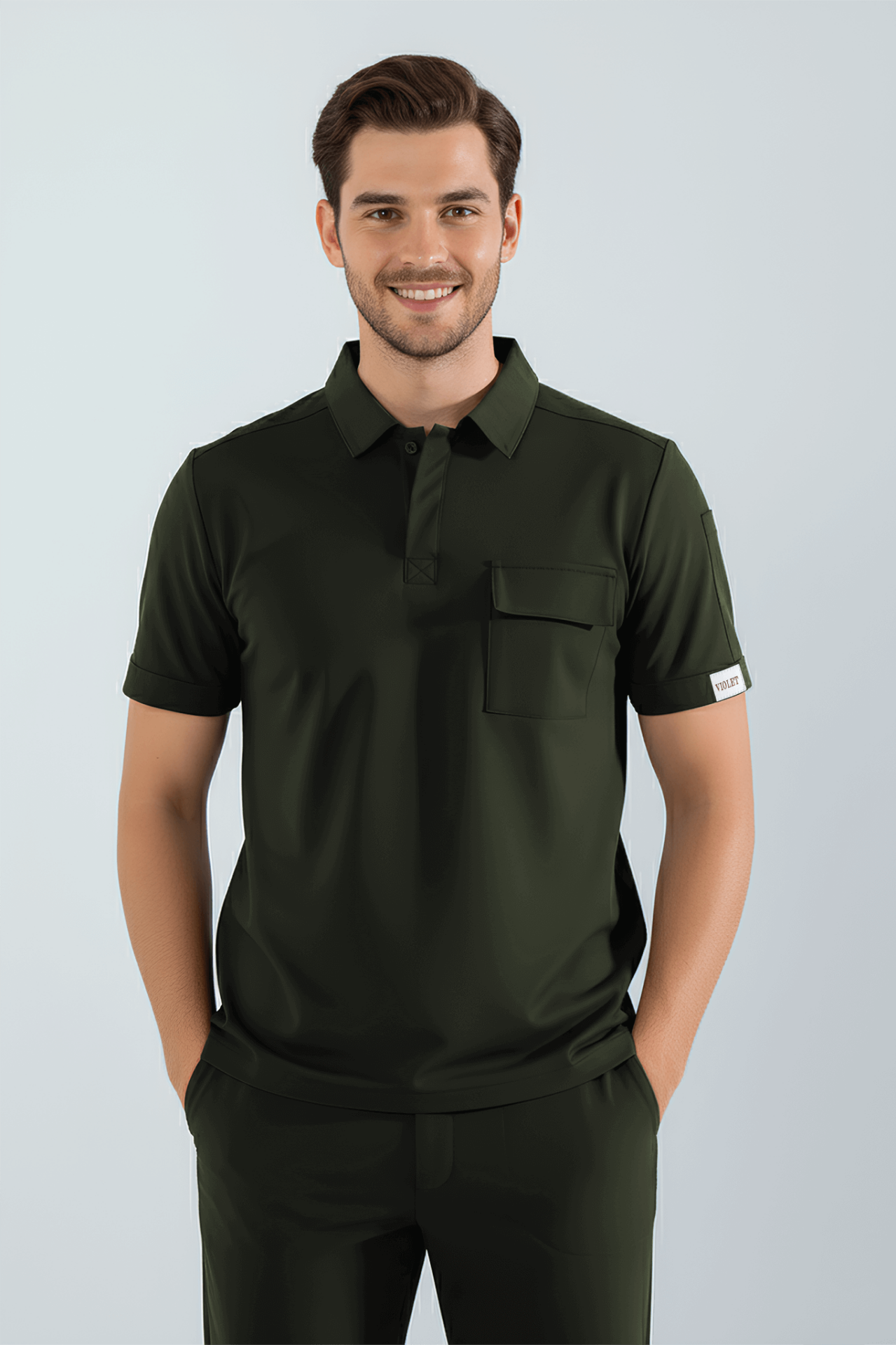 Violet Uniform Erkek Haki Anka Scrubs Üst