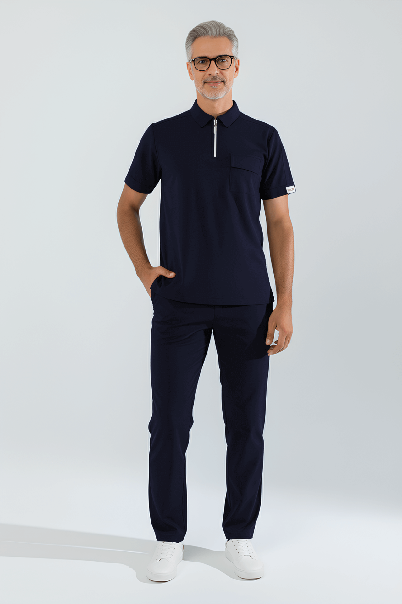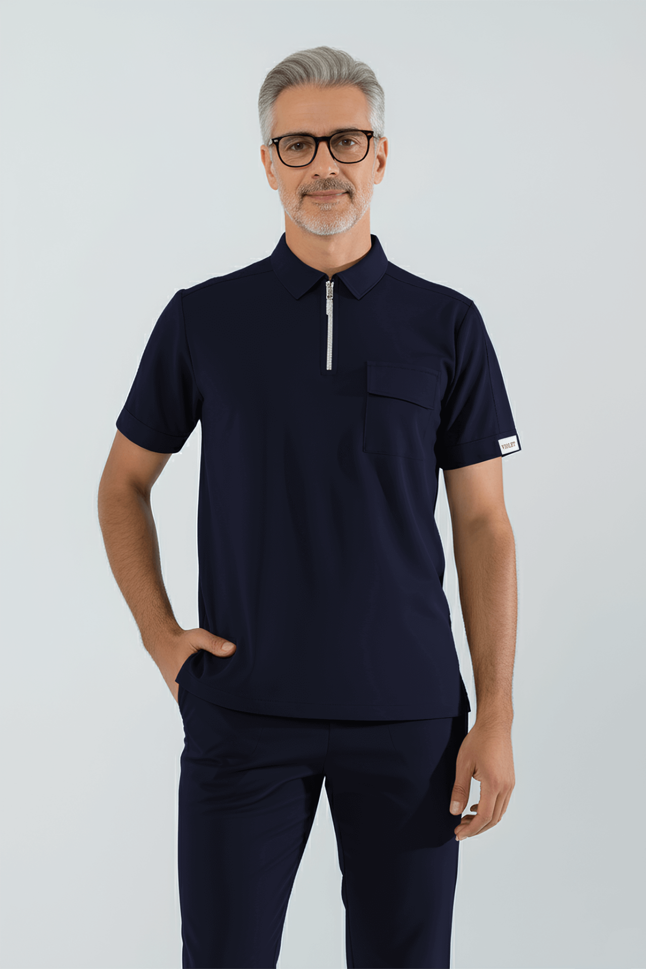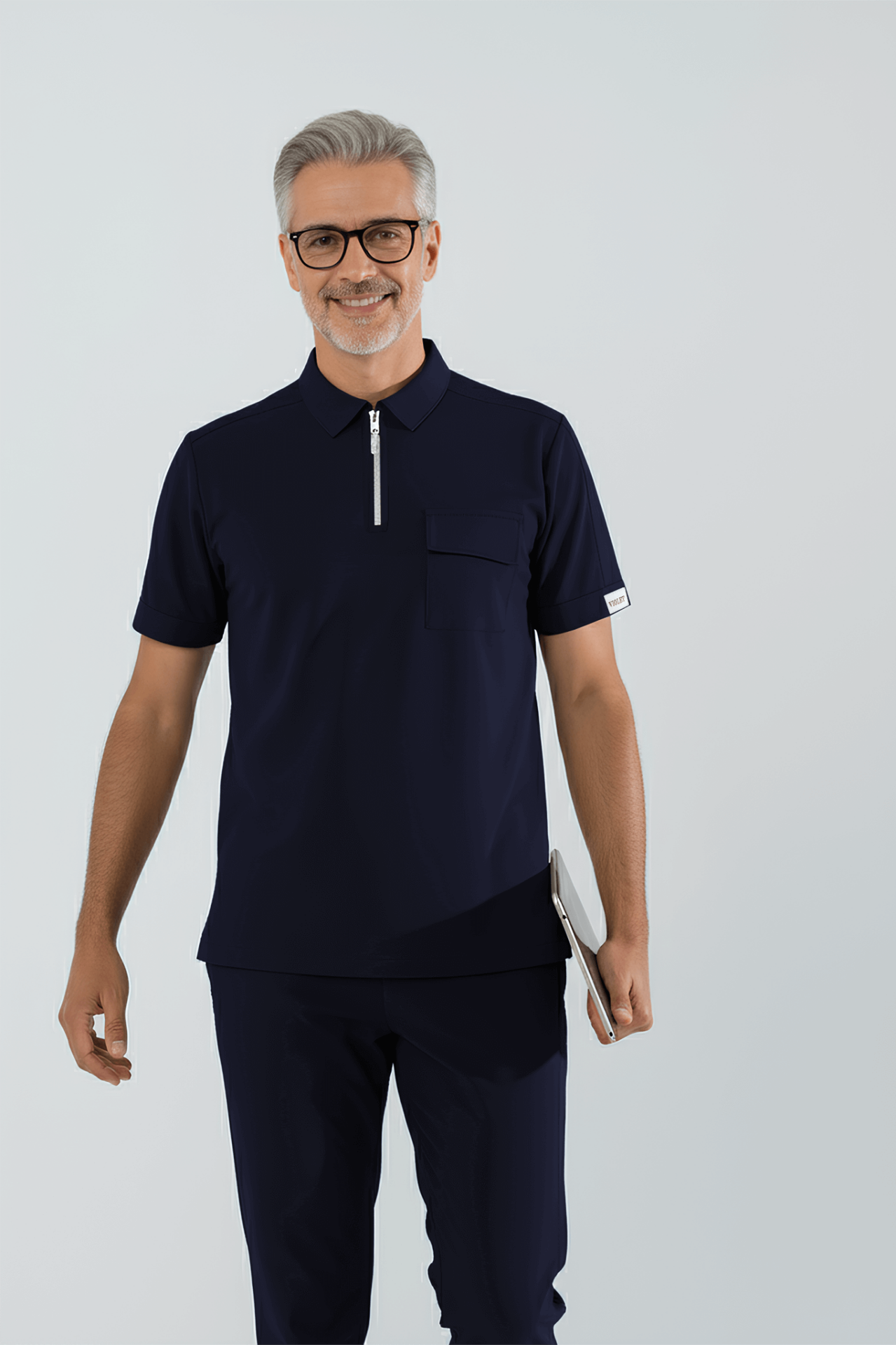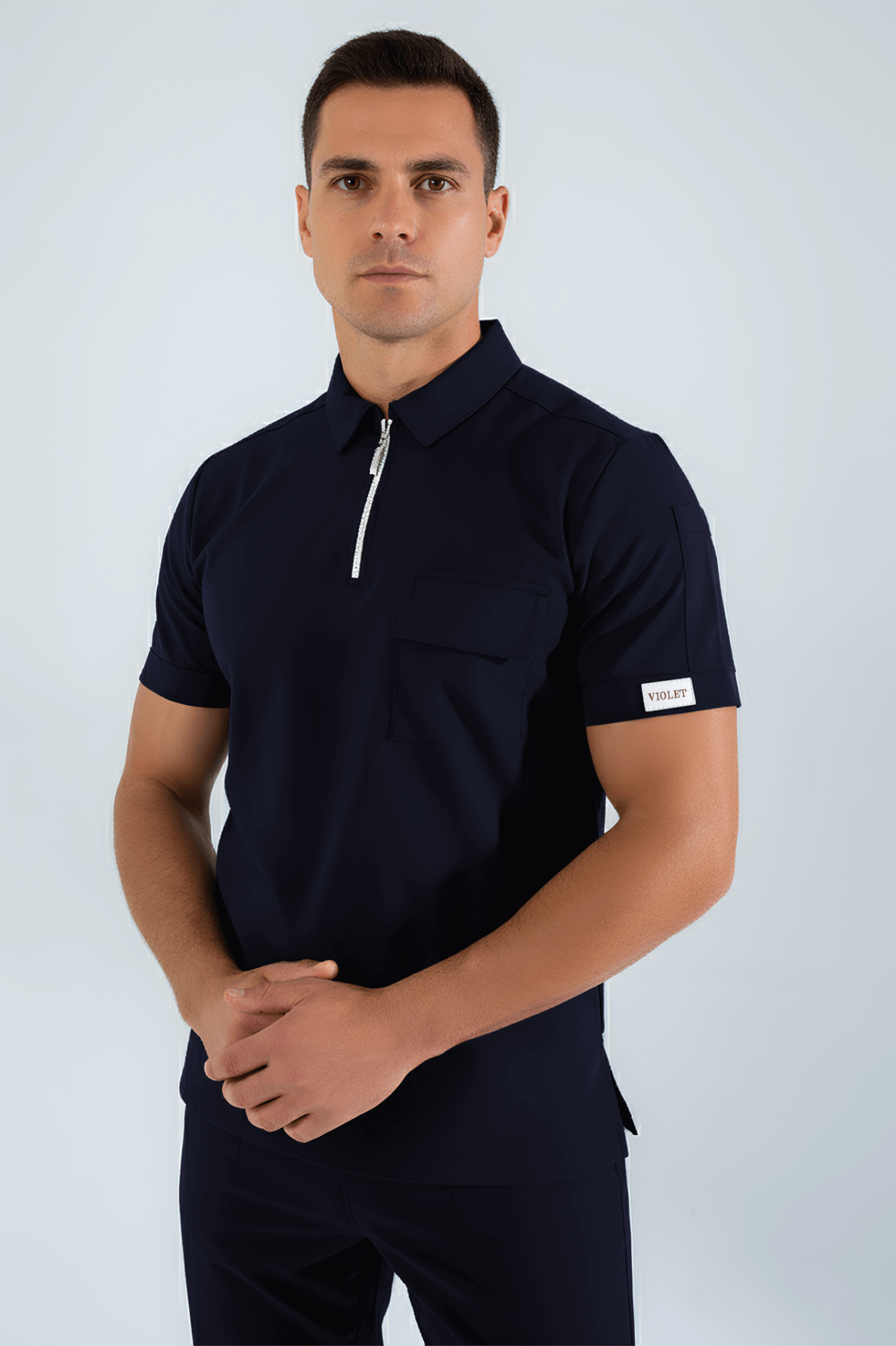 Violet Uniform Erkek Lacivert Atlas Scrubs Üst