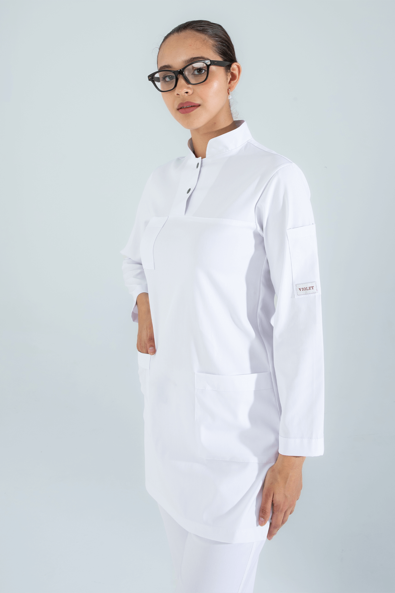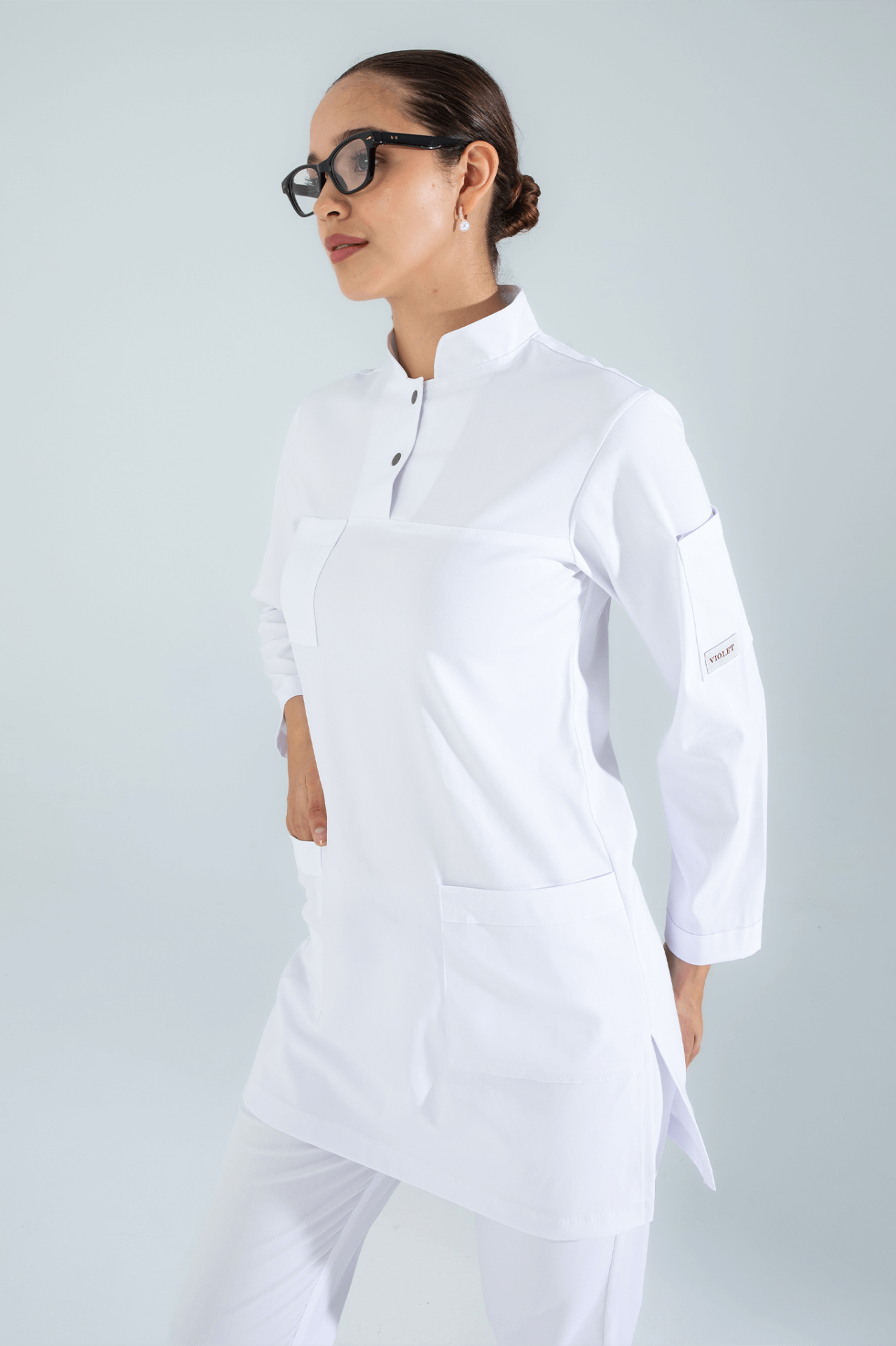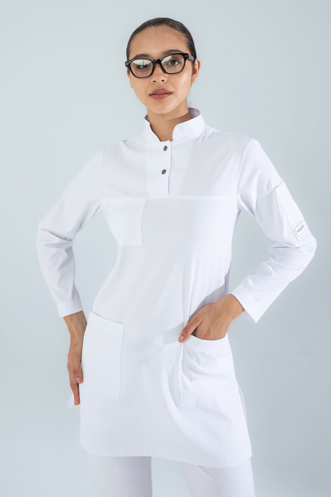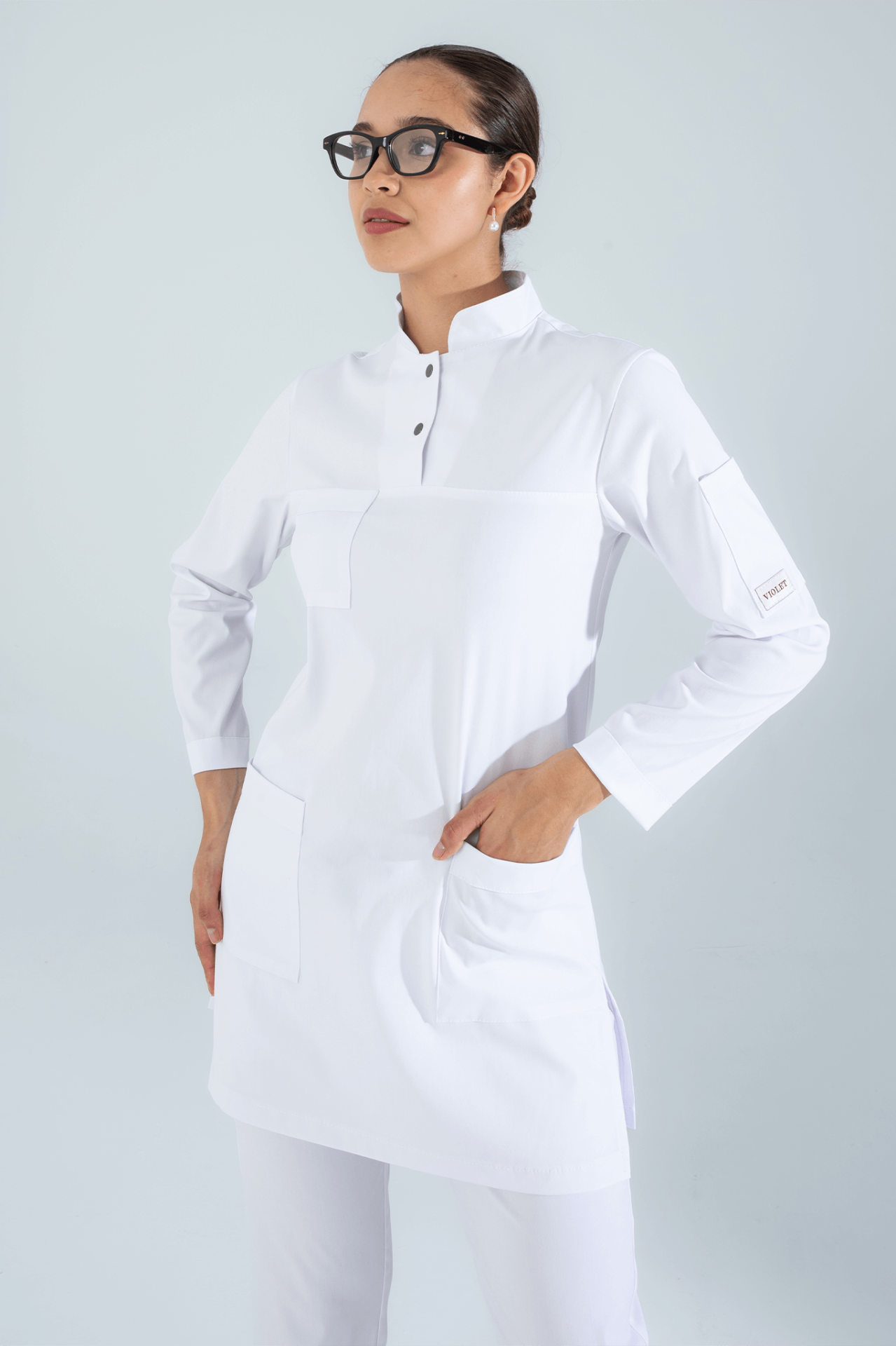 Violet Uniform Beyaz Shamera Tesettür Scrubs Üst