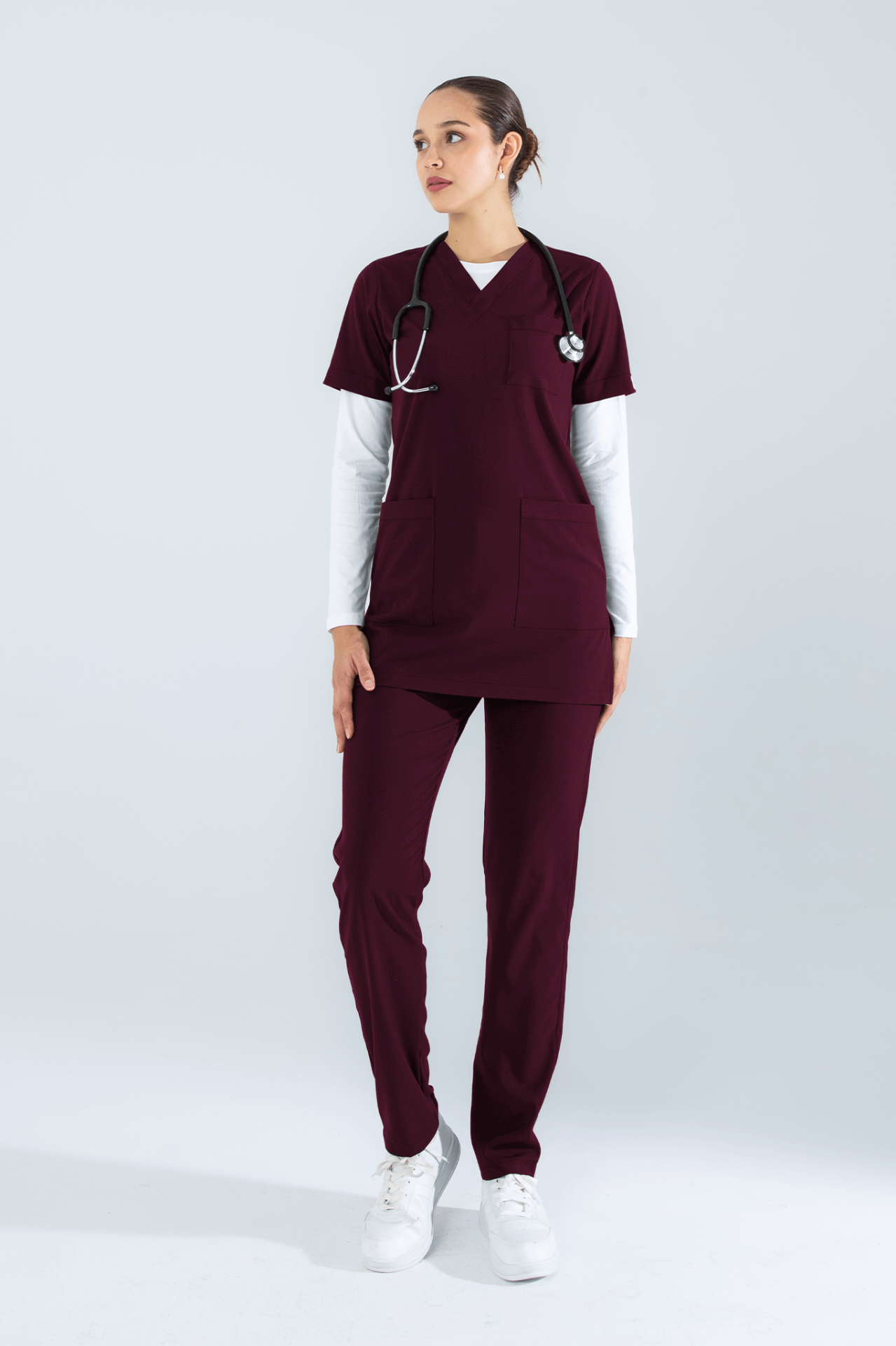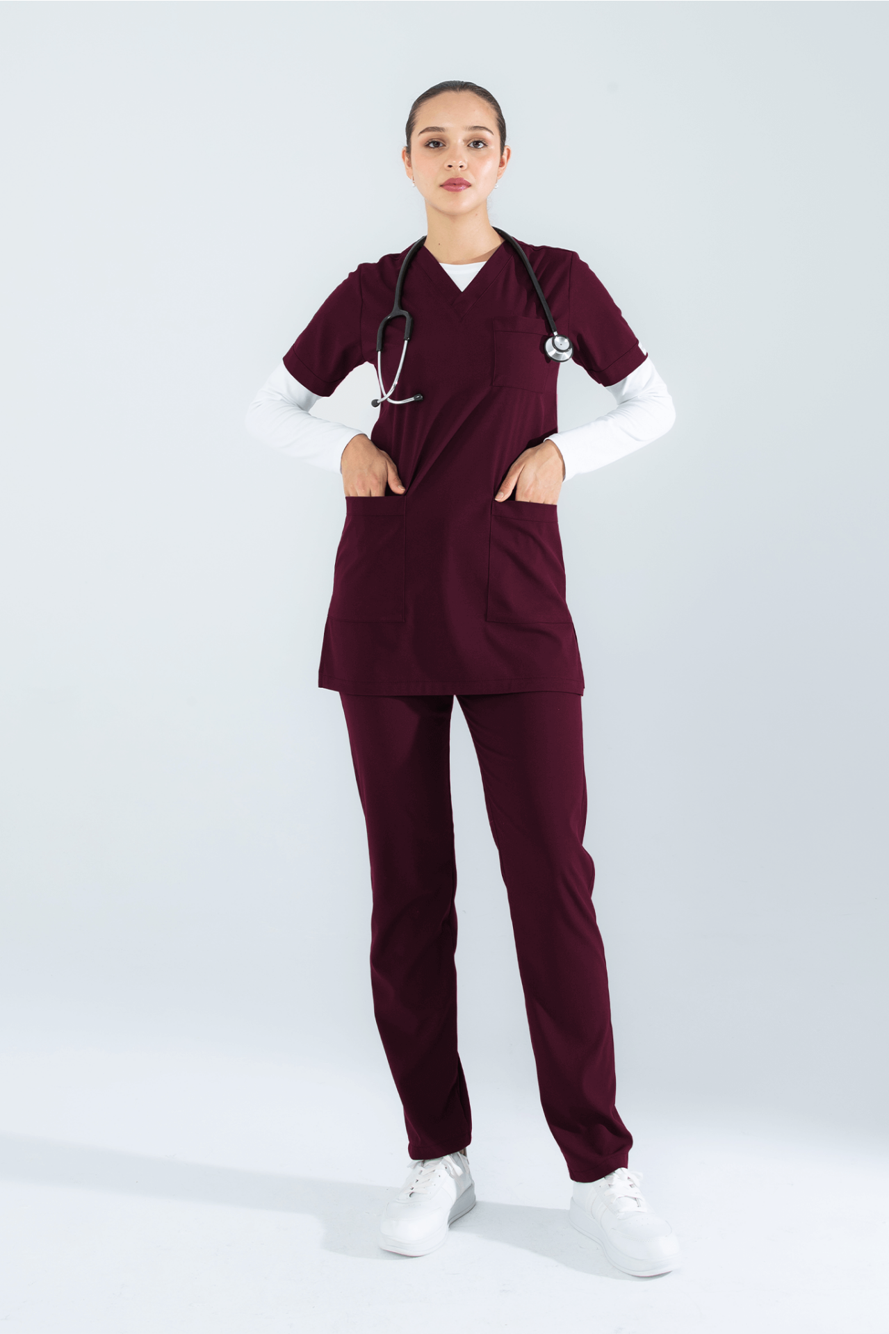 Violet Uniform Bordo Alia Tunik Scrubs Takım