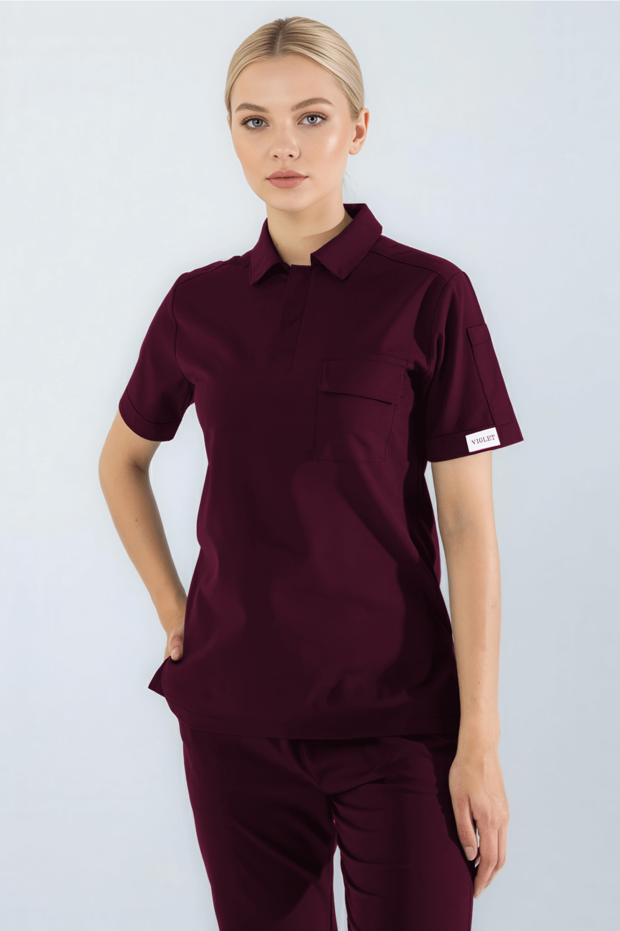 Violet Uniform Kadın Bordo Anka Scrubs Üst
