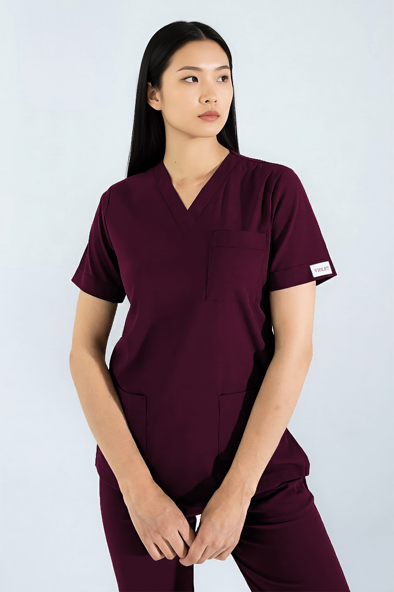 Violet Uniform Kadın Bordo Myra Scrubs Üst