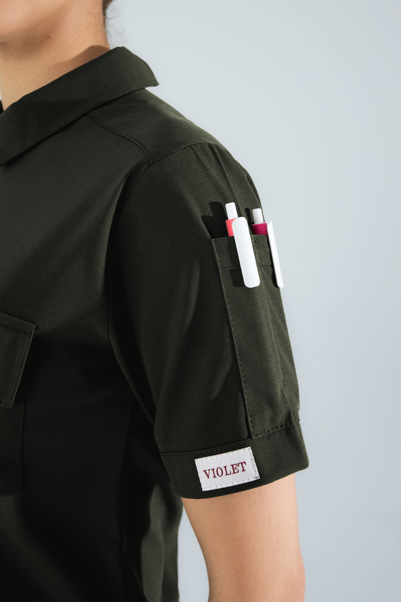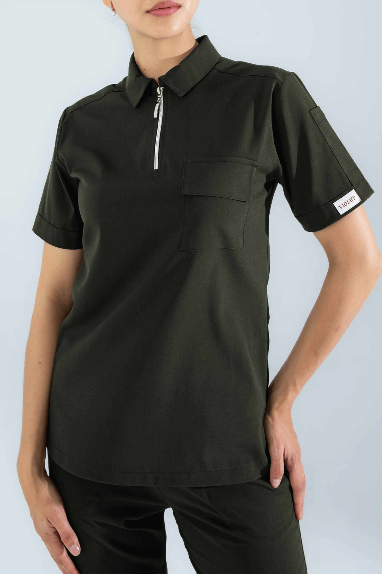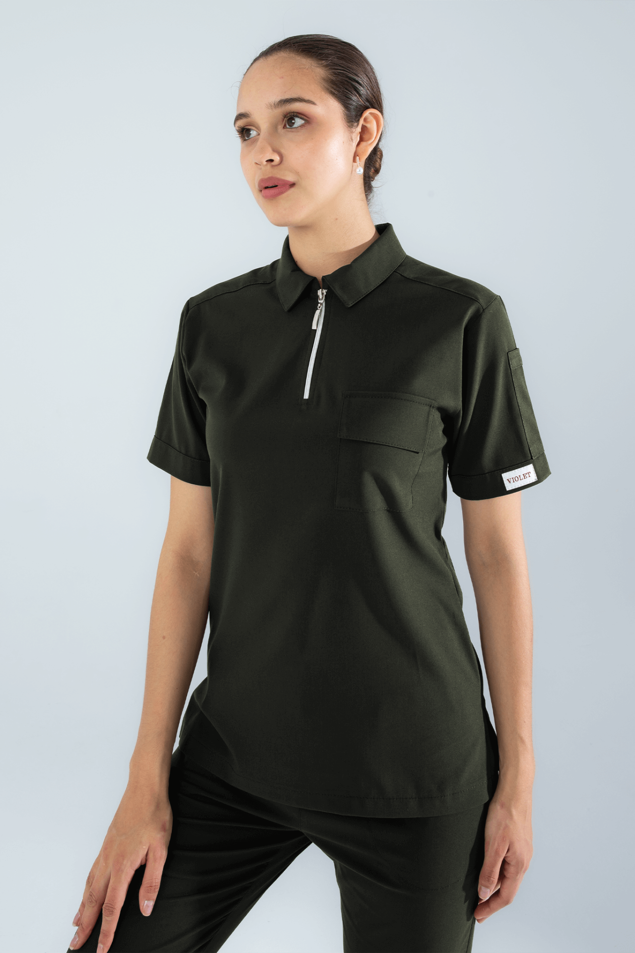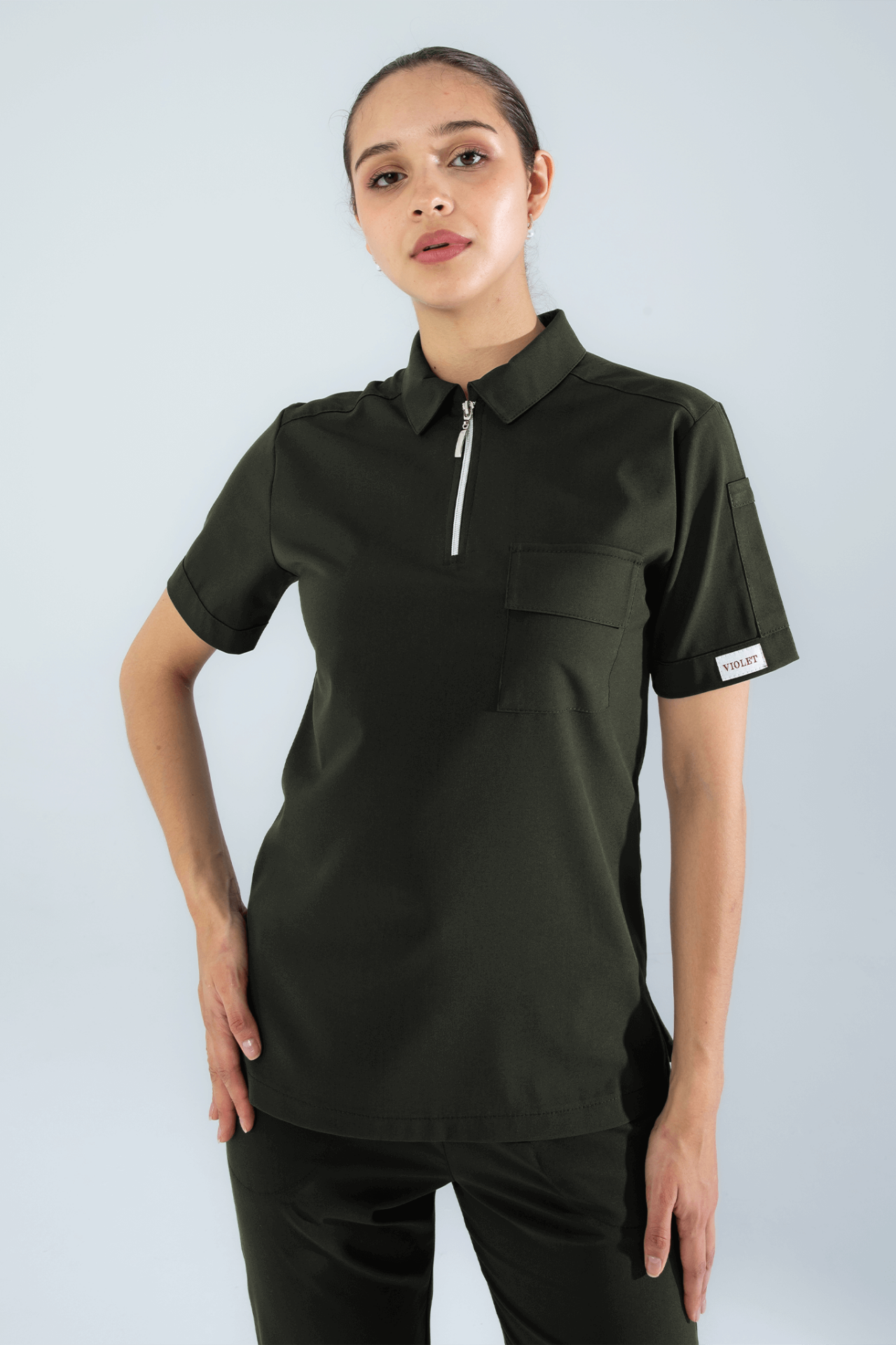 Violet Uniform Kadın Haki Atlas Scrubs Üst