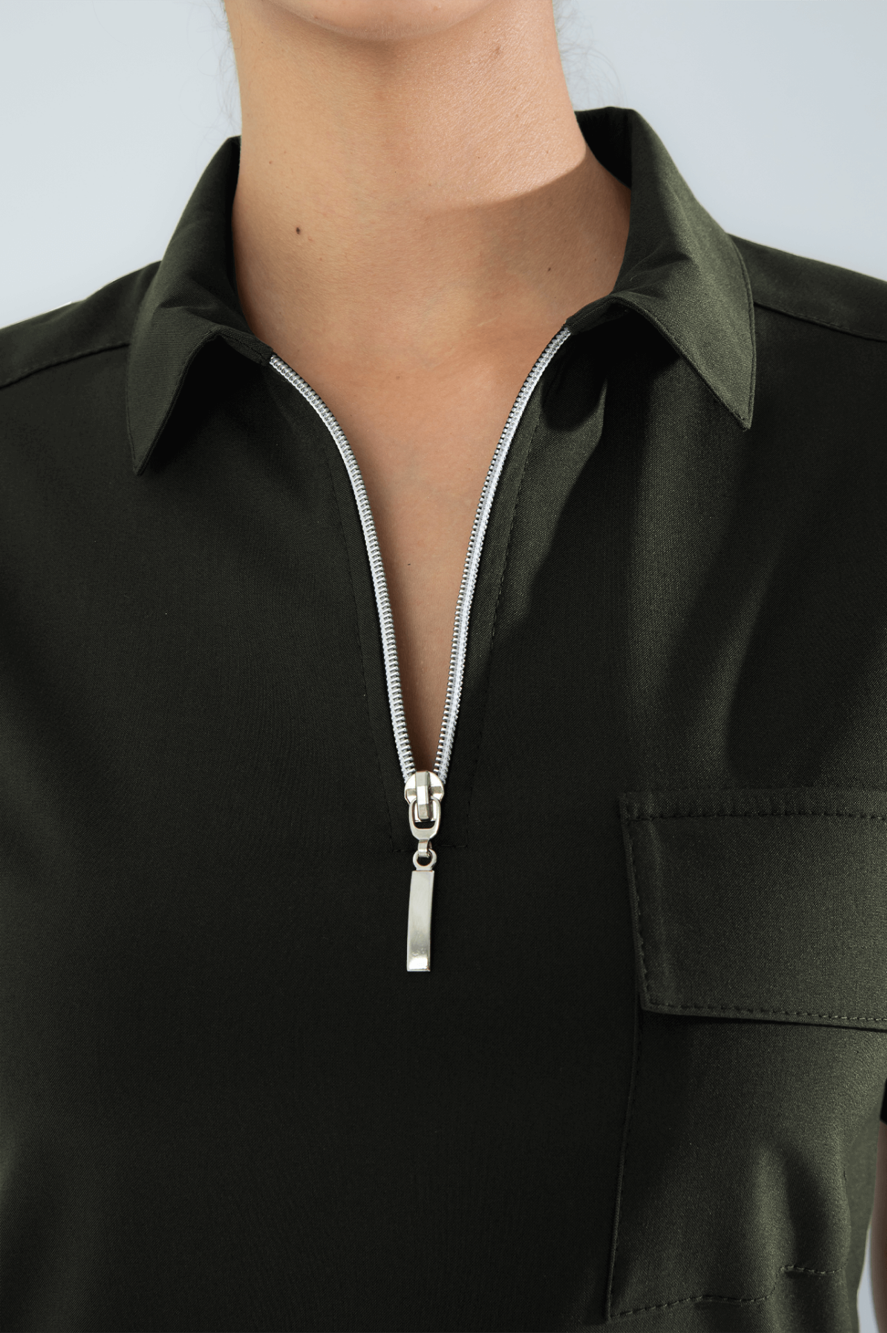Fermuarlı polo yaka tasarımıyla modern ve şık bir duruş sergileyen bu forma üstü, kapaklı göğüs cebi ve kol cebiyle fonksiyonelliği ön plana çıkarır. Yan yırtmaç detayları ise hem hareket kolaylığı hem de zarif bir görünüm sunar. Günlük kullanımda konforu, tarzınızda ise kaliteyi ön planda tutan özel bir tasarımdır.