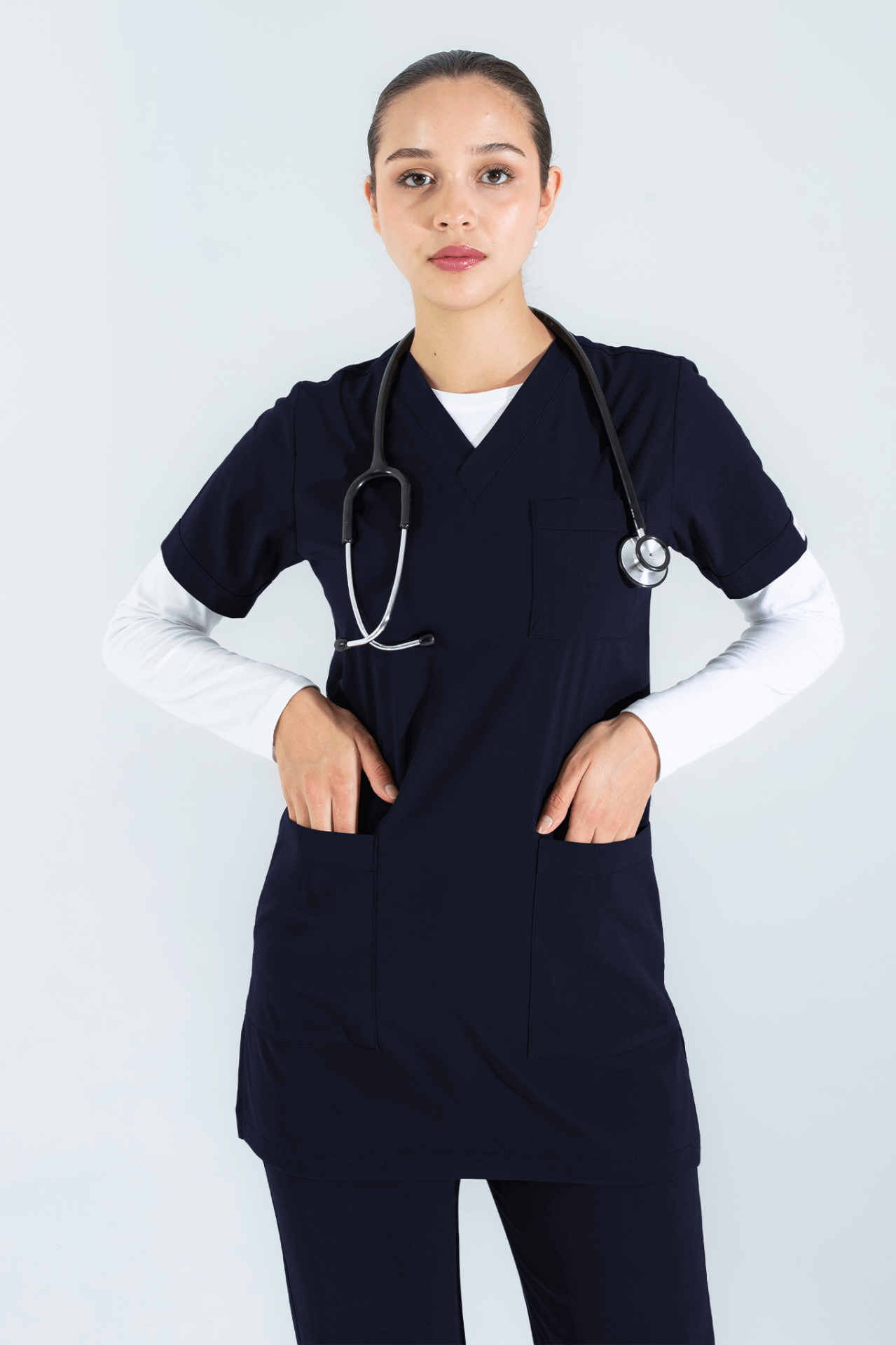 V yaka tasarımıyla modern bir şıklık sunan Tunik forma üstü, bir göğüs cep ve iki alt cep ile pratik kullanım sağlar. Yan yırtmaç detayları hareket özgürlüğünü artırırken, Tunik boy kesimi rahatlık ve zarafeti bir arada sunar.