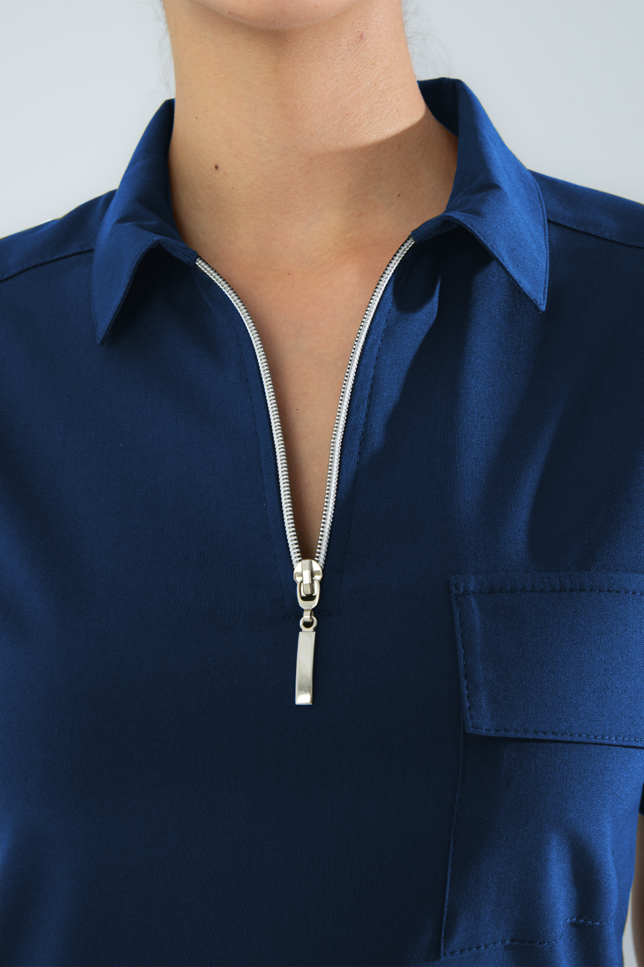 Fermuarlı polo yaka tasarımıyla modern ve şık bir duruş sergileyen bu forma üstü, kapaklı göğüs cebi ve kol cebiyle fonksiyonelliği ön plana çıkarır. Yan yırtmaç detayları ise hem hareket kolaylığı hem de zarif bir görünüm sunar. Günlük kullanımda konforu, tarzınızda ise kaliteyi ön planda tutan özel bir tasarımdır.