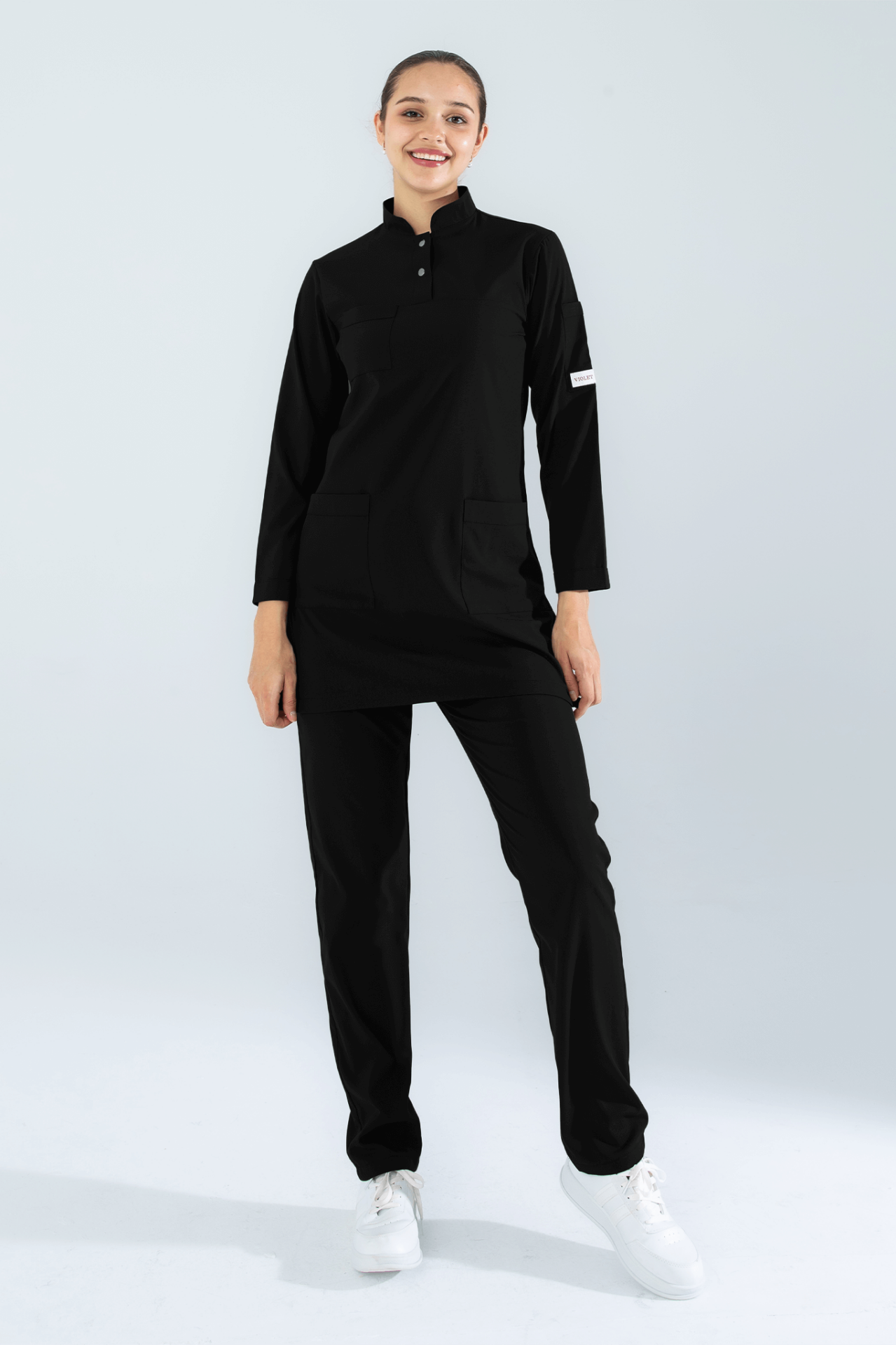 Violet Uniform Siyah Shamera Tesettür Scrubs Takım